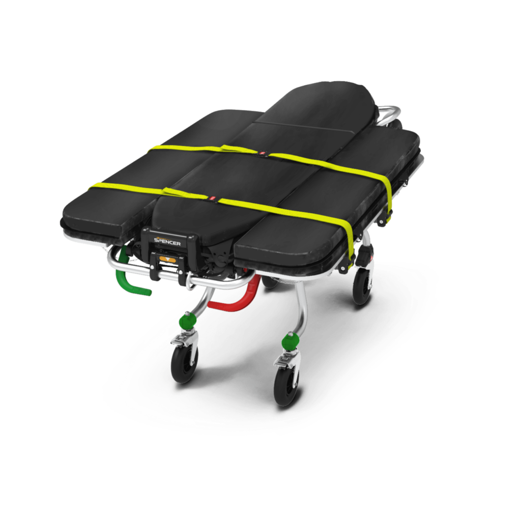 The Spencer Bariatric Board is a kit designed to extend the board of Spencer Cinco Mas, Cross and Crossover self-loading stretchers to enable them to transport bariatric patients. The surface area of the board is increased through the installation of two devices: S-WINGS, a support system attached to the stretchers and fixed by means of pins (easy to apply or remove); QMX 778, a thermo-welded PVC mattress specially made for bariatric patients. The S-WINGS bariatric supports include the attachment kit for mounting on a stretcher. The QMX 778 mattress can be sold separately from the S-WINGS.